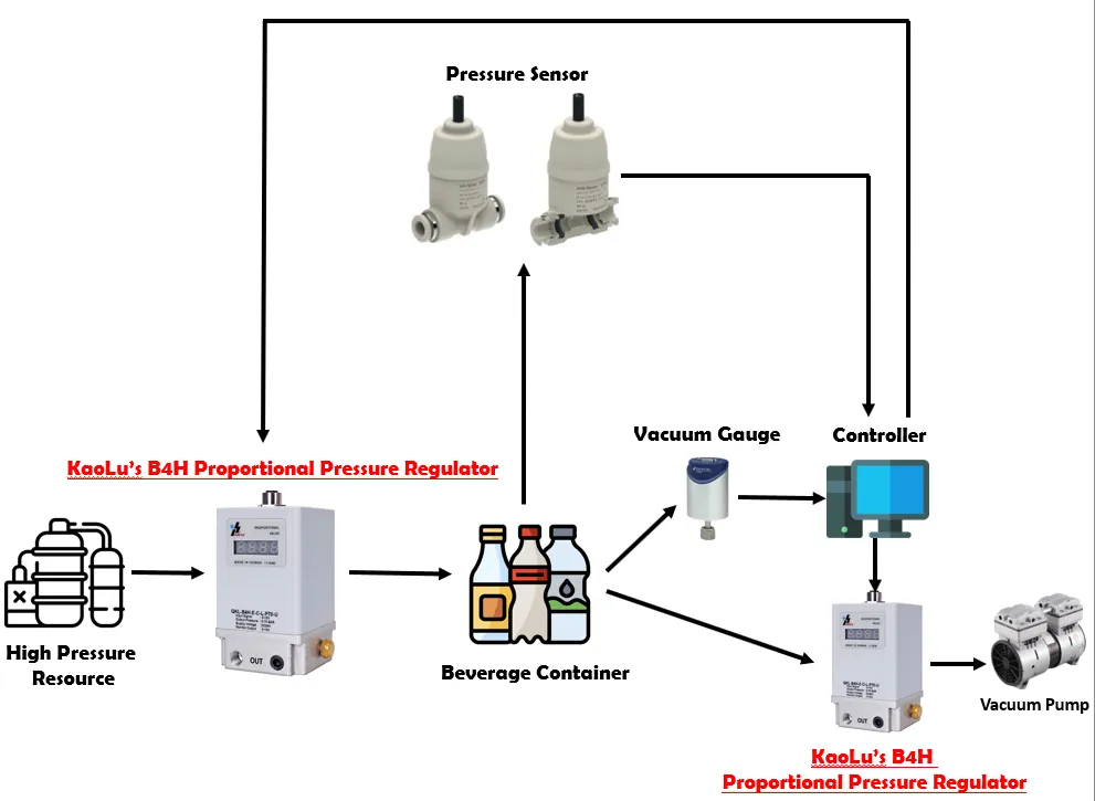 Yukarıdaki çözümde, vakum derecesi ve basınç kontrolü için sırasıyla iki kapalı döngü kontrol döngüsü tasarlanmıştır. Maliyeti ve hacmi azaltmak için, bu iki kapalı döngünün ortak kısmı giriş ve çıkış valfleri ve kontrolörlerdir ve bağımsız kısmı vakum göstergeleri ve basınç göstergeleridir.