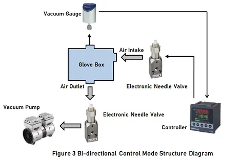 Yukarıdaki yukarı akış ve aşağı akış kontrol modlarının kendilerine özgü avantajları vardır ve pratik uygulamalarda nadiren tek başlarına kullanılırlar. Genellikle yukarı akış ve aşağı akış modları birlikte entegre edilir, bu da çift yönlü kontrol modu olarak adlandırılır. Çift yönlü kontrol modunda, vakum basınç kontrolcüsünün ileri ve geri kontrol işlevlerine sahip olması gerekir, yani yukarı akış oransal akış kontrol valfi için ters kontrol ve aşağı akış oransal akış kontrol valfi için ters kontrol işlevi olmalıdır.
