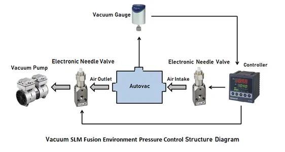 Bu düşük basınç atmosfer gereksinimi, 5 kPa (yaklaşık 0.05 bar) ile 101 kPa (atmosfer basıncı) arasındaki işlem penceresi içinde hızlı ve doğru hava basıncı kontrolü ile sağlanır. Bu aralık, standart bir 40 bar oransal regülatör veya 100 bar oransal regülatörün aksine, çok düşük ve geniş bir basınç yelpazesini ultra hassas yönetmeyi gerektirir.