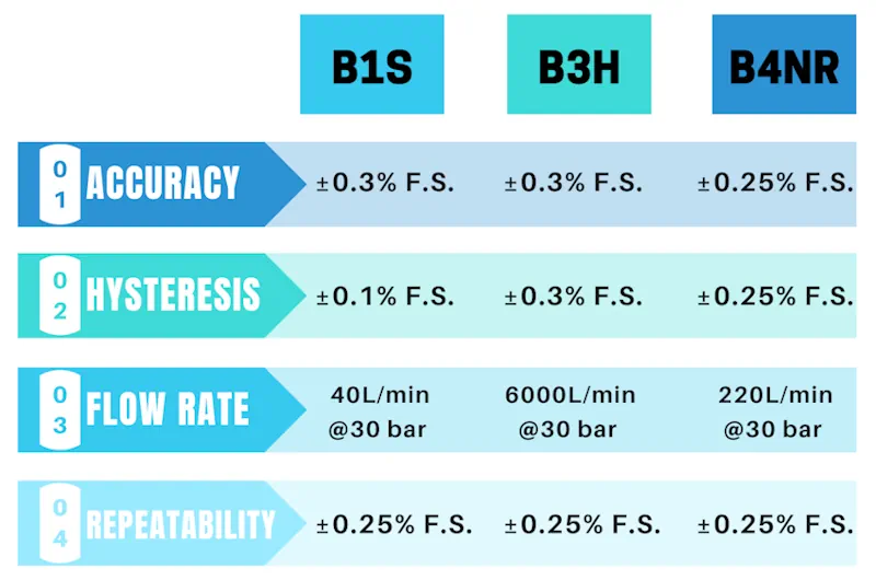 | Akış Hızı | 40 L/dk @ 30 bar | 6000 L/dk @ 30 bar | 200 L/dk @ 30 bar |