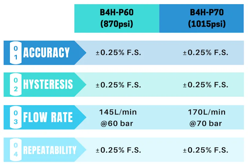 | Çıkış Aralığı | 0-60bar (870 psi) | 0-70bar (1015 psi) |
